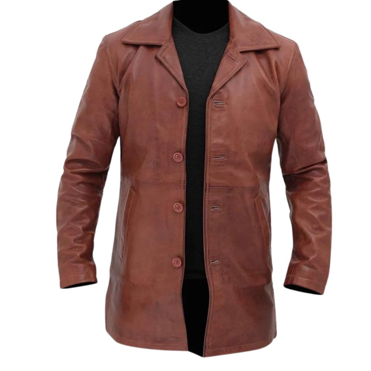 Regal Elegance Men’s Leather Coat, a piece designed for those who appreciate the finer things. This luxurious trench coat combines classic styling with modern functionality, creating a sophisticated look for any occasion. Crafted from premium quality leather, its rich texture and impeccable tailoring ensure a distinguished appearance and comfortable fit. Its deep brown hue and clean lines reflect a minimalist aesthetic while offering versatile wearability—from formal gatherings to casual outings. A statement piece in every sense, this coat is designed to impress and built to last.
