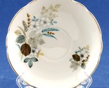 Regency bone china saucer, pattern name unknown. 5-1/2 inches in diameter, scalloped edge, gold trim, excellent condition. This saucer is in excellent condition.