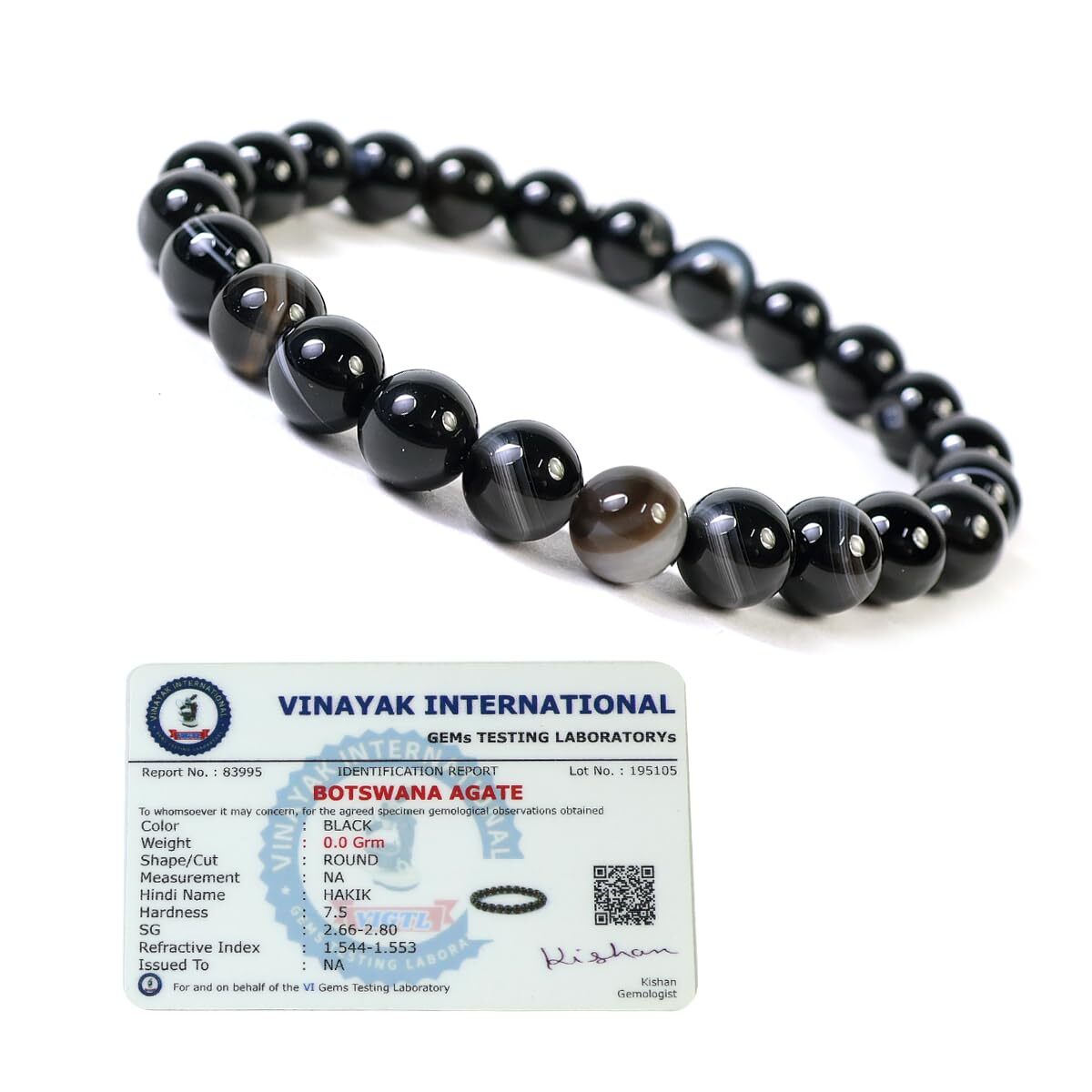 | Part Number: | Certified-Botswana Agate-8 mm-Bracelet |