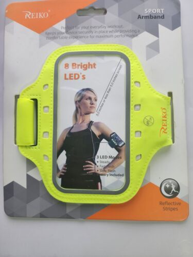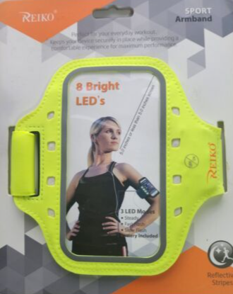 You are Buying A Brand New And Factory Sealed Reiko Running Sports Armband With Touch Screen and Flashing Lights 5.5X3X 0.5 Inches Device In Neon Green .... Reiko sports lycra armband for 5.5 in devices
