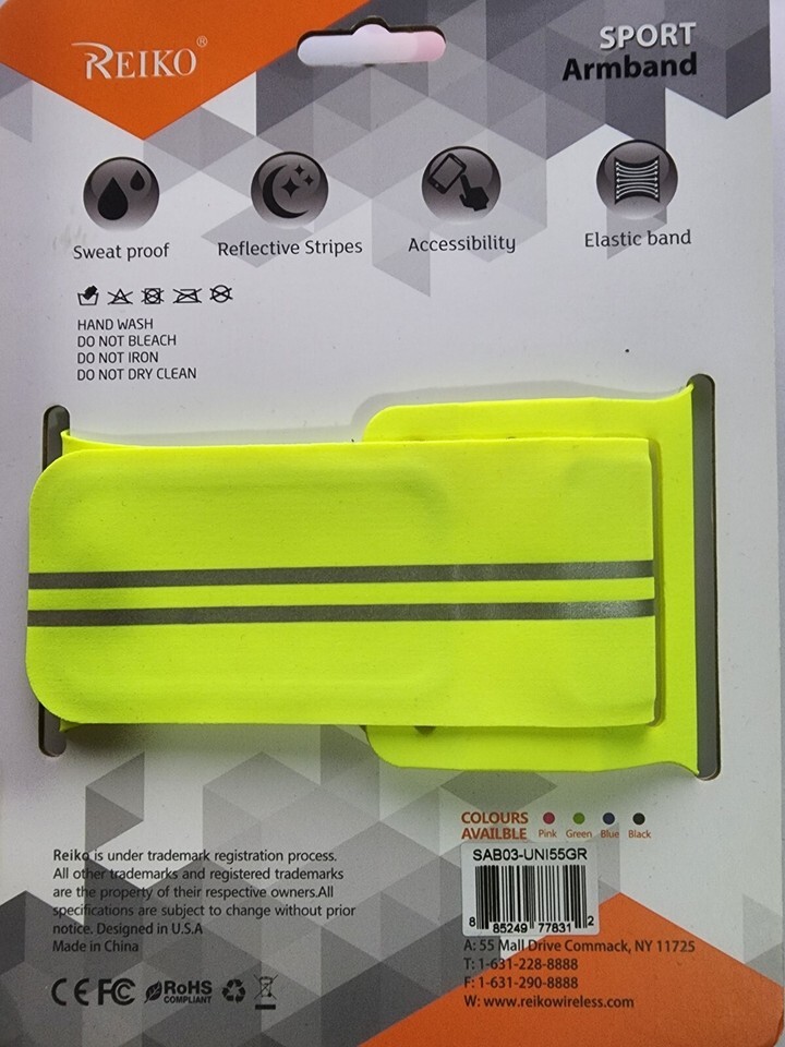 You are Buying A Brand New And Factory Sealed Reiko Running Sports Armband With Touch Screen 5X3X0.5 Inches Device In Green.... Reiko sports lycra armband for 5.5 in devices