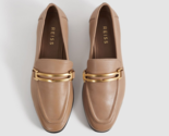 - Reiss Angela Leather Loafers Beige Nude Tan Gold Hardware Round Toe Sz 37/6.5 US