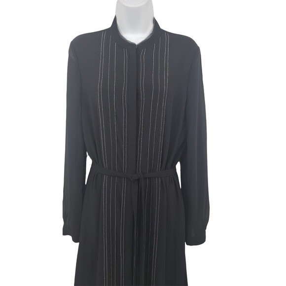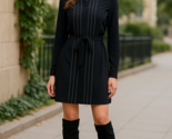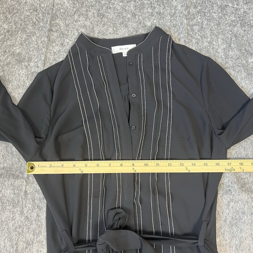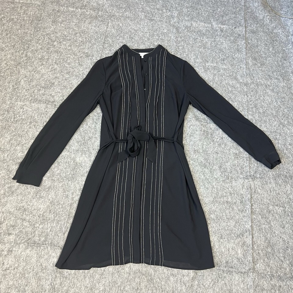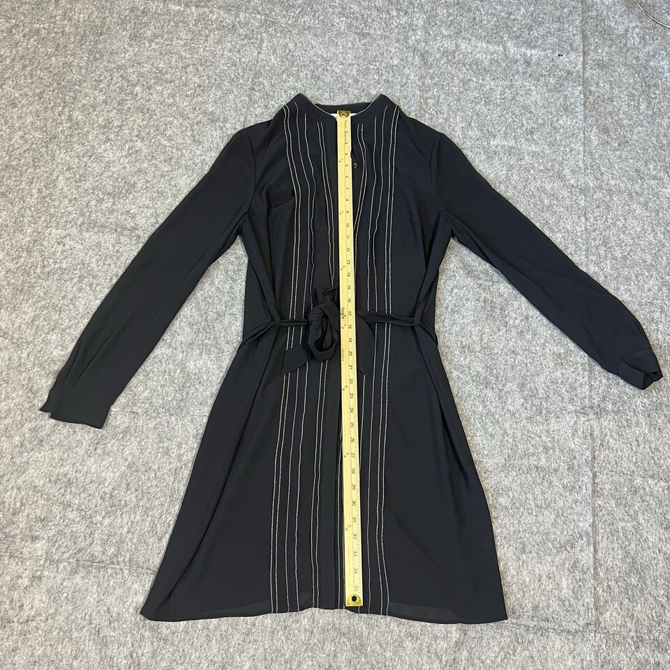 - Reiss Black Long Sleeve Mini Dress Women’s UK 12 US 8 Belted Contrast Stitching