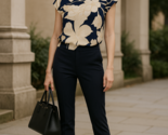 - Reiss Poppy Print Floral Top Size Small Navy Cream Short Sleeve Stretch Viscose