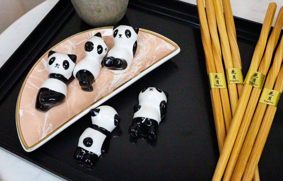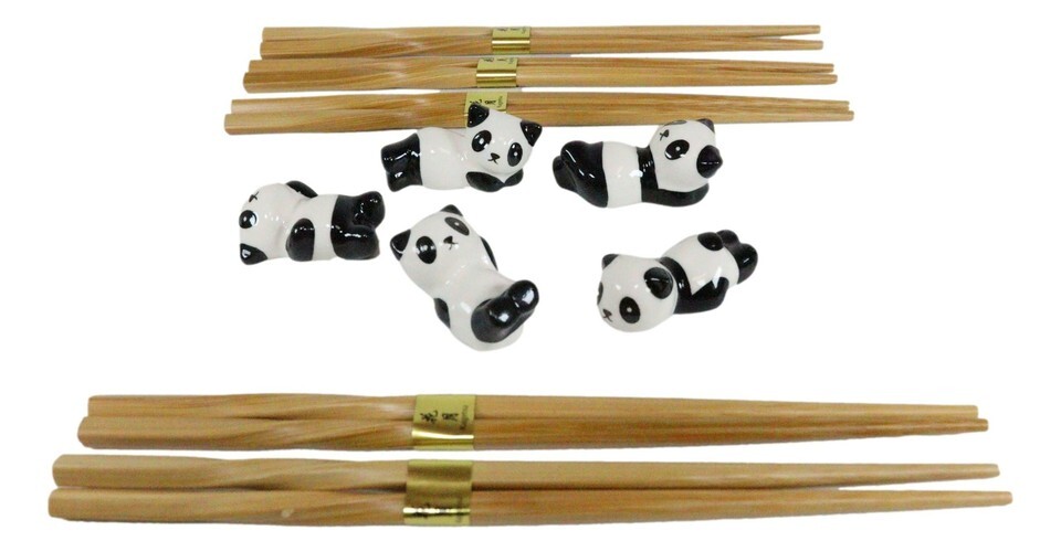 - Relaxing Exotic Giant Panda Bears Set of 5 Chopsticks And Flatware Holder Rests