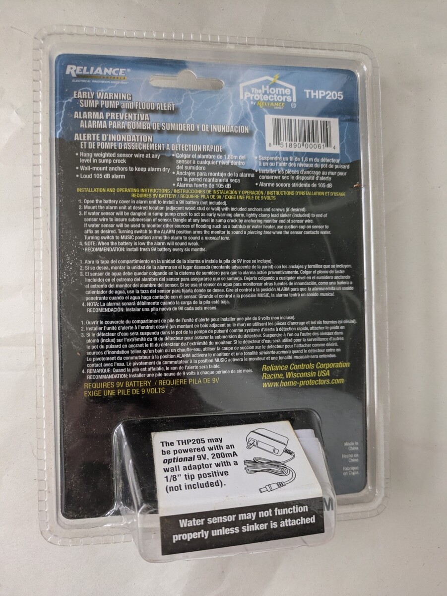 - Reliance Early Warning Sump Pump Alarm & Flood Alert THP205 NEW
