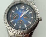 - Relic Quartz Watch Men 50m Silver Blue Rotating Bezel Day Date New Battery 8"