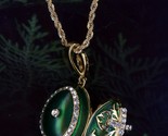 Verde Smaltato Argento Uovo Ciondolo con Sottile Cristallo Maschera Like, W/ Oro