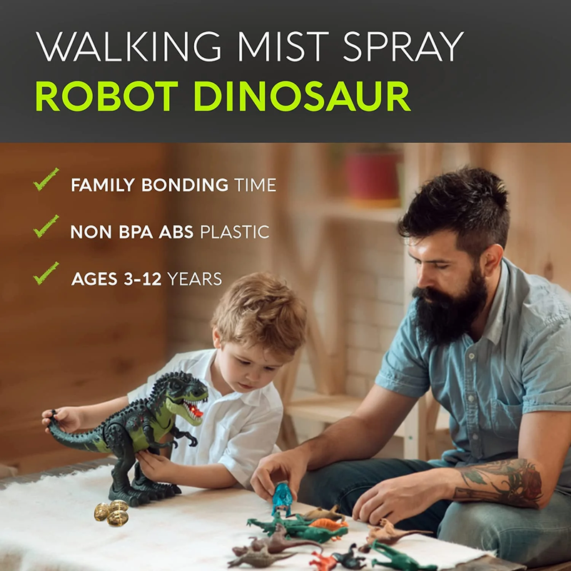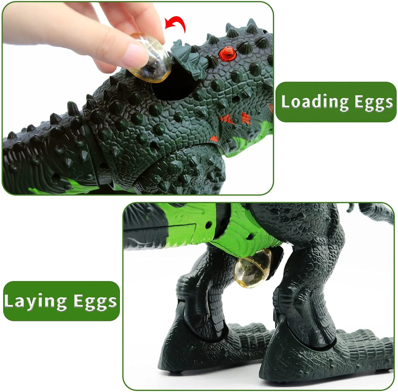 ?Electronic RC Robot Dinosaur can walk, roar, shake head, lay eggs and light up his eyes ?RC dinosaur toys is made of premium eco-friendly ABS material, no peculiar smell, no fading ?All paints and finishes are tested to strictest safety and quality standard and safe toys for children ?Inspire your kid's creativity and imagination ?It would be the perfect Christmas, birthday, Thanksgiving gift for your little dinosaur lover