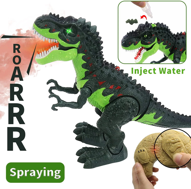 ? The electric robot dinosaur could moving, flame spraying, realistic roaring and laying eggs.