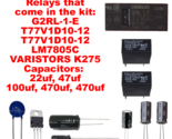 Components that come in the kit: G2RL-1-E, T77V1D10-12, T77V1D10-12, LM7805C, Varistor K275 Capacitors: 22uf, 47uf, 100uf, 470uf 470uf