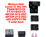Relays that come in the kit: T9AS1D12-12, T77V1D10-12, HF33F-012-ZS3, HF33F-012-ZS3, JZC-22FFC15D and 3 amp fuse