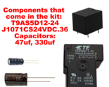 Relays that come in the kit: T9AS5D12-24, J1071CS24VDC.36 and Capacitators: 47uf, 330uf
