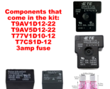 Components that come in the kit: T9AV1D12-22, T9AV5D12-22, T77V1D10-12, T7CS1D-12, and 3amp fuse