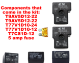 Components that come in the kit: T9AV5D12-22, T9AV5D12-22, T77V1D10-12, T77V1D10-24, T7CS1D-12, and 5amp fuse