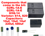 Relays that come in the kit: G2RL-1A-E, G2RL-1A-E, G5Q-14, VARISTORS S14, S20 Capacitors: 10uf, 10uf, 10uf, 220uf 680uf