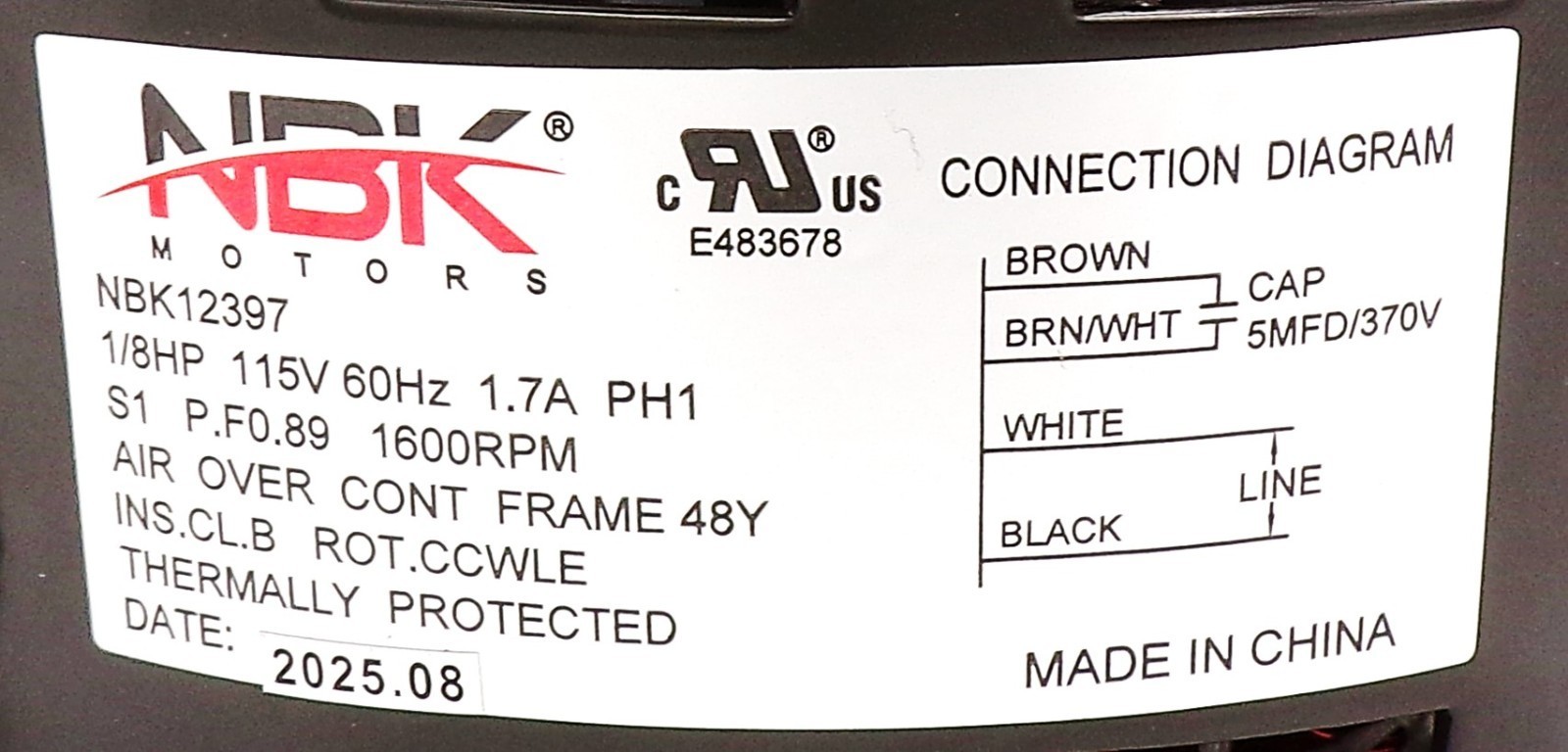 - Replacement for PEMS 100133N N | Loren Cook Vent Fan Motor 1/8 hp 1600 RPM 115V