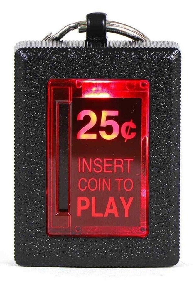 RepliCade Insert Coin keychains are constructed from a traditional blend of diecast metal and plastic. Push the coin return button to activate LED illumination for 10 seconds. This 1:1 scale arcade-accurate replica.