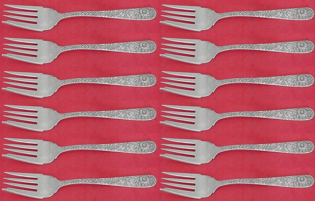 - Repousse By Kirk Sterling Silver Salad Fork Set 12 pieces 6 1/4"