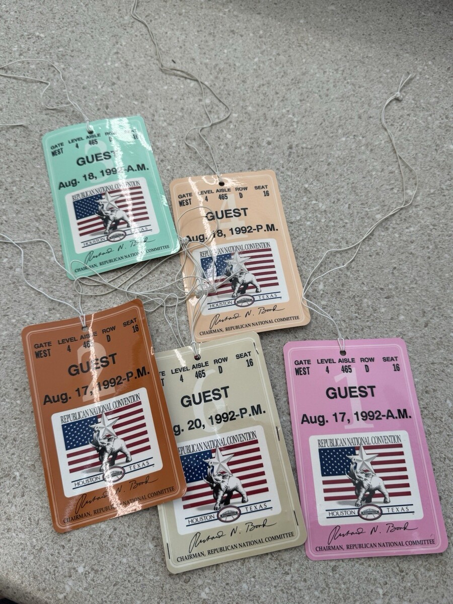 - Republican National Convention 1992 GUEST Pass Badge Ticket Lot of 5 Astrodome