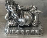 Decorative 6-inch reclining Lord Ganesha (Ganpati) statue, made of resin with metallic silver-style finish. Beautifully detailed with jewelry, headdress, and traditional symbolism. Ideal for home decor, meditation spaces, altar setups, collections, or spiritual gifting.