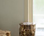 Resin Burlwood Accent Table Amber Resin Display Stand, Entryway Stool, Contemp