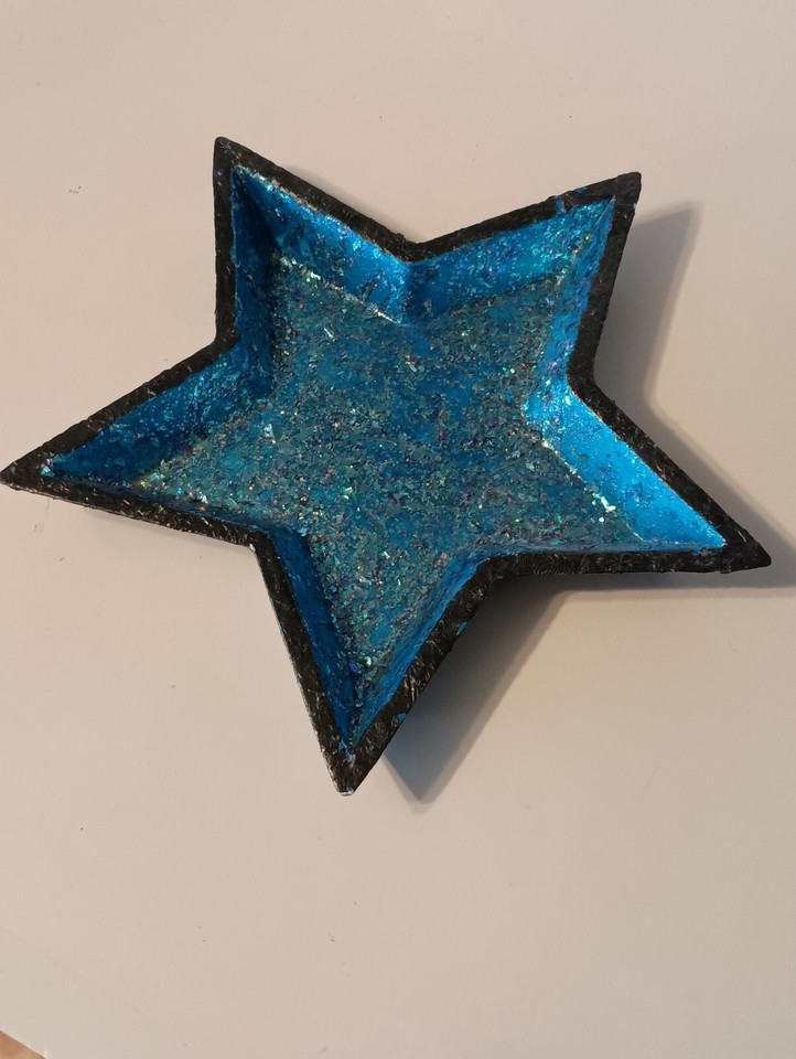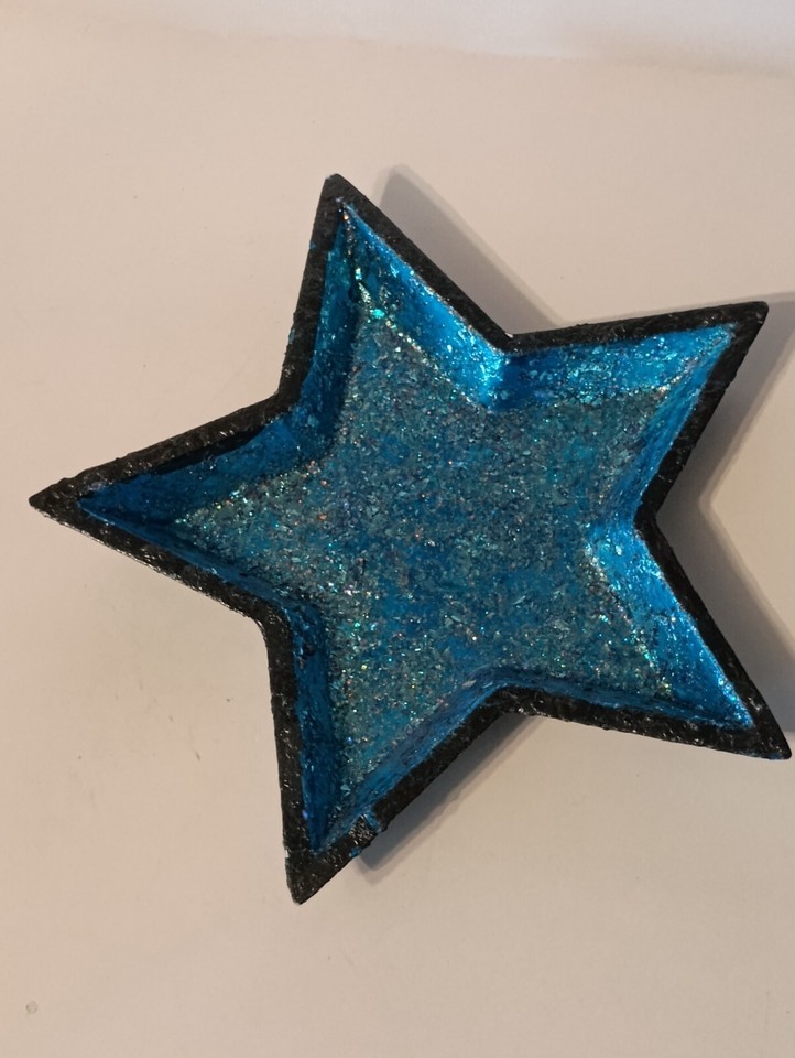 - Resin Star Shaped Folk Art Trinket Tray Blue Glitter 5 Point Unique
