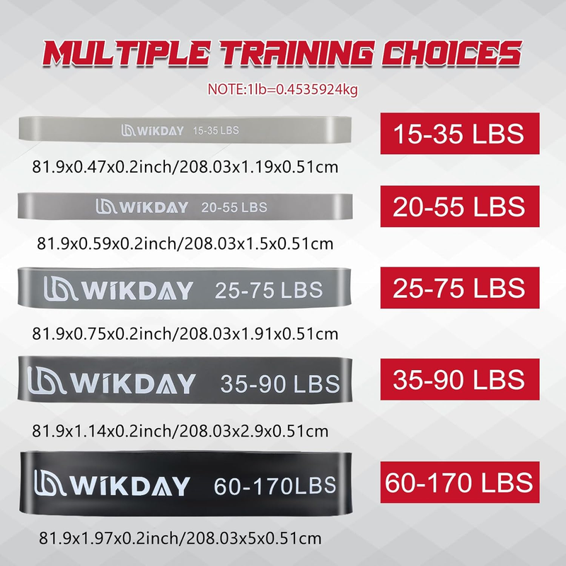 Wide Applications: This professional exercise bands comes with 5 different levels of resistance with a new door anchor. #1Gray(15-35 lbs), #2Gray(20-55 lbs), #3Gray(25-75 lbs), #4Gray(35-90 lbs), Black(60-170 lbs). They are very suitable for beginners, fitness enthusiasts, athletes and other people