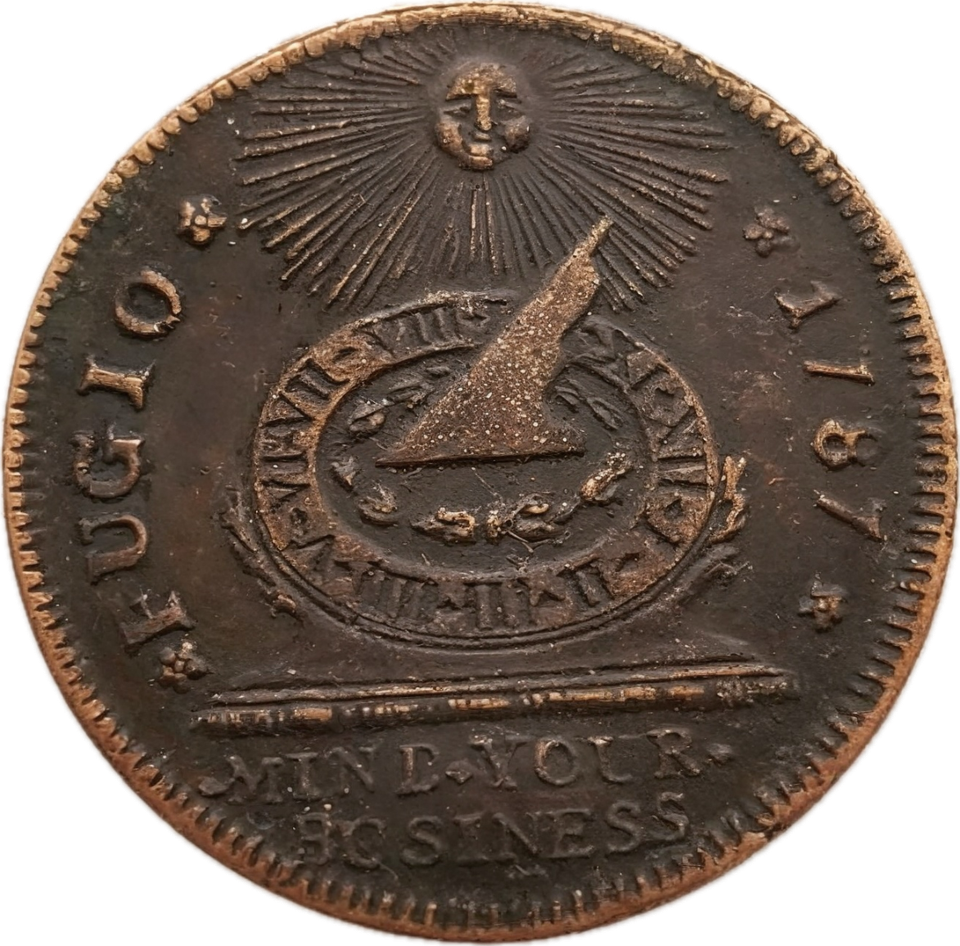Cette reproduction frappante du cent fugitif de 1787, largement consideree comme la premiere piece officielle des Etats-Unis, offre un lien captivant avec la naissance d'une nation. Concu par Benjamin Franklin, l'avers comporte un cadran solaire avec l'inscription ?FUGIO? (latin pour ?I fly?), suggerant que le temps passe vite, associe a l'avertissement ?MIND YOUR BUSINESS? ci-dessous - une expression litterale et philosophique du travail dans la nouvelle republique. Au-dessus du cadran solaire brille un soleil radieux avec un visage humain, ajoutant une dimension allegorique symbolisant l?illumination et la direction divine. Le revers de cette piece fait puissamment echo a la vision durable de Franklin de l?unite. Entoure de treize anneaux interconnectes, chacun representant l'une des colonies d'origine, est la devise "WE ARE ONE" - une declaration de solidarite dans le sillage de l'independance. Cette reproduction, bien qu'une restriction moderne, honore la valeur historique et symbolique de la piece originale, ce qui en fait une acquisition precieuse pour les collectionneurs interesses par l'iconographie americaine precoce et la numismatique de l'ere revolutionnaire.