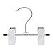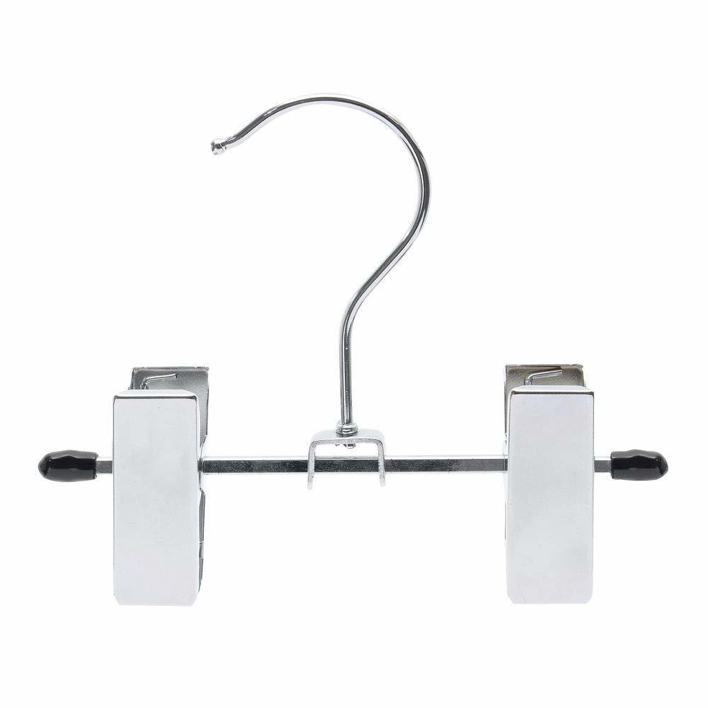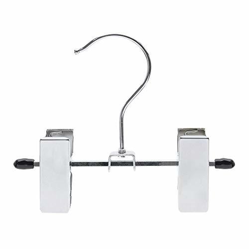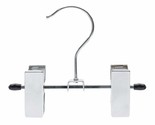 Product description: Small double clip chromer hanger is perfect for hanging items in pairs, such as boots, sandals, gloves, and other accessories. The 5" wide hanger is also great for fabric and other sample swatches. Clips have rubberized inserts for protecting merchandise. Chrome.