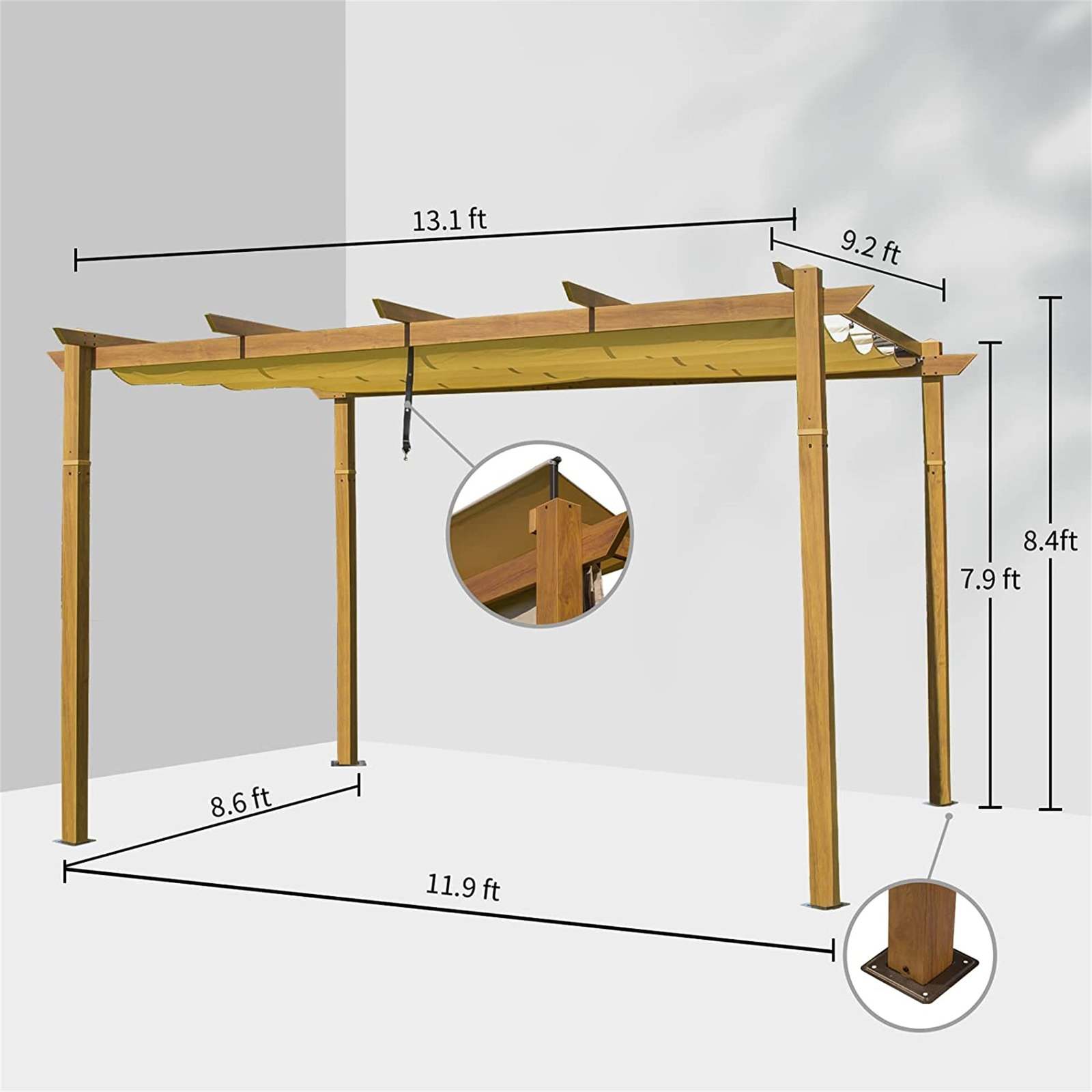 PREMIUM FABRIC MATERIAL: The canopy of pergola is made of polyester fabric+PU to ensure a reliable waterproof, UV-resistant, and fade-resistant, American standard 4 color fastness, American standard fire protection CPAI-84.