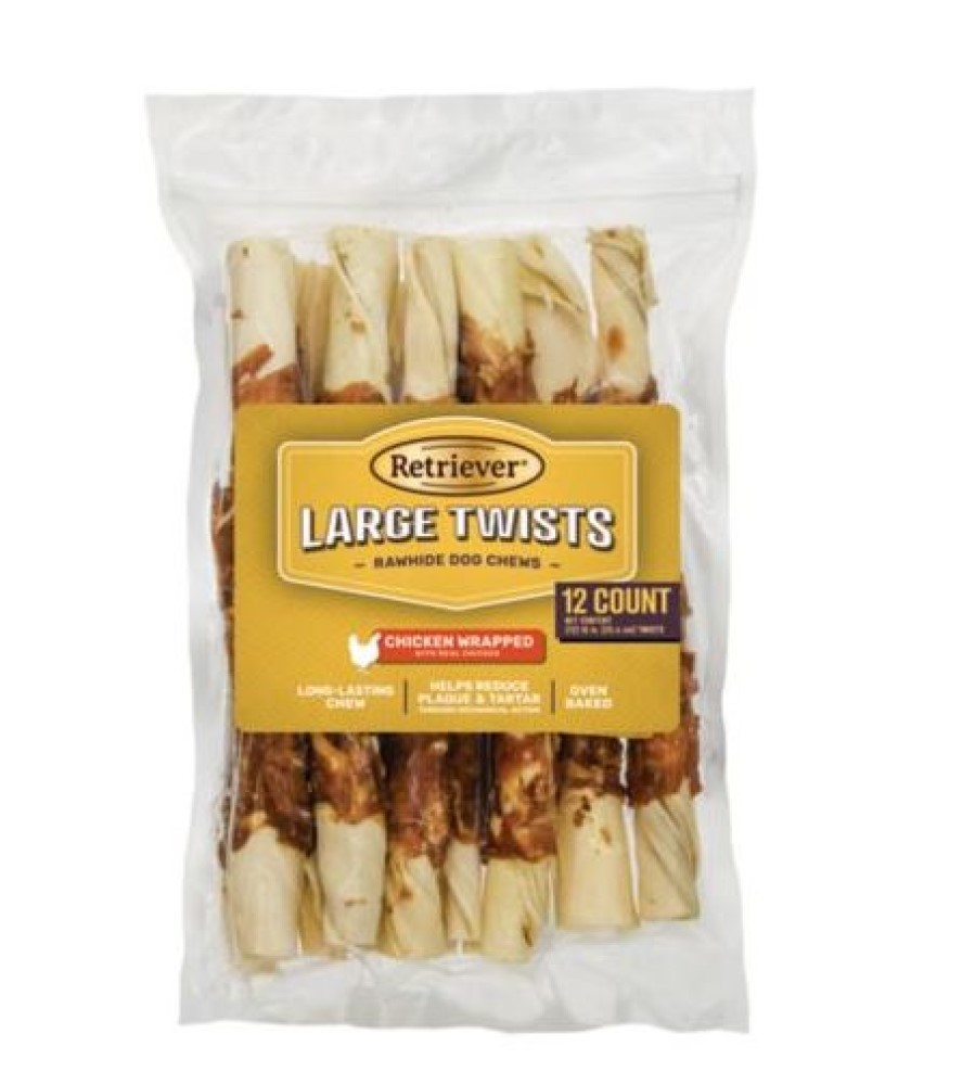 - Retriever Large Twists 513TSC Chicken Wrapped Rawhide Dog Chew Treats - 12 Count