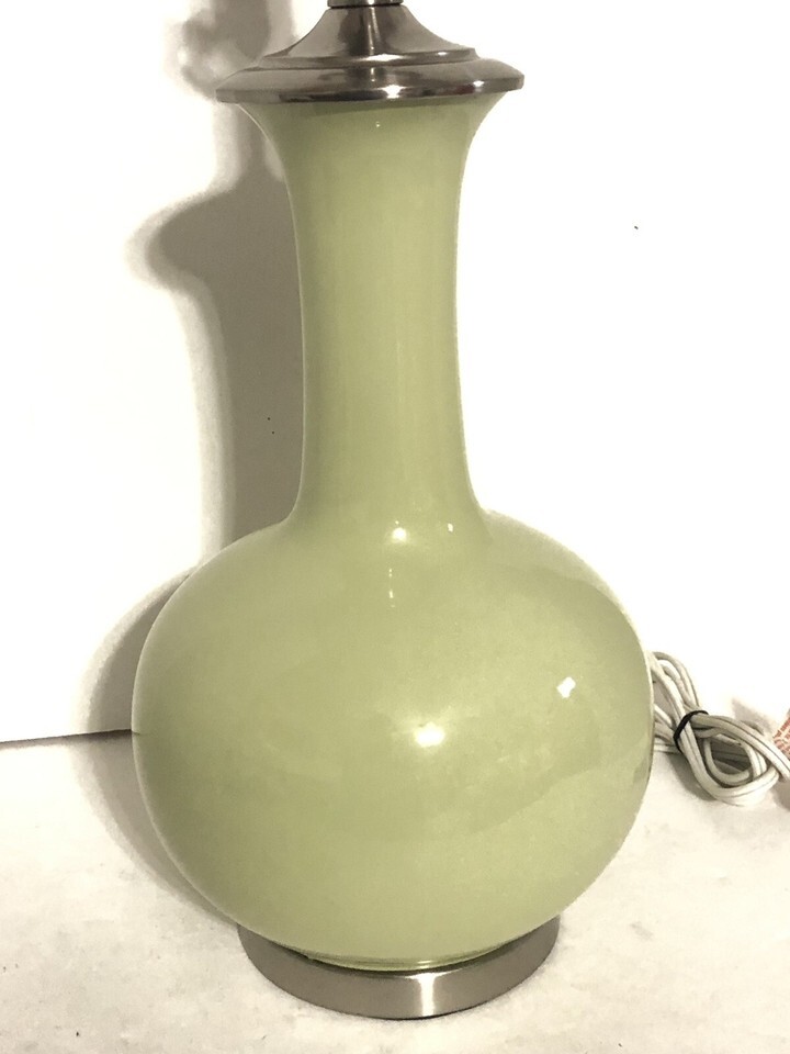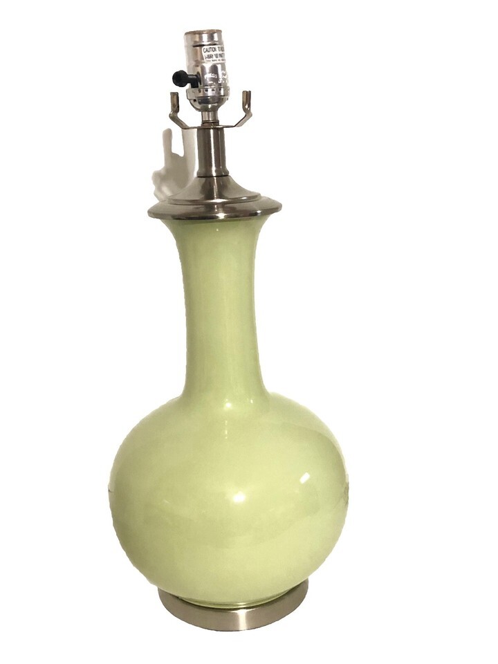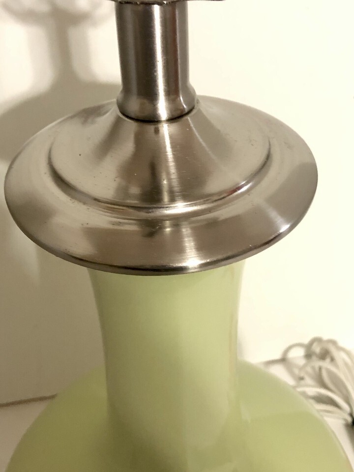 - Retro Ceramic Table Lamps (2) Long Neck Genie Bottle Gourd Mid Century Green