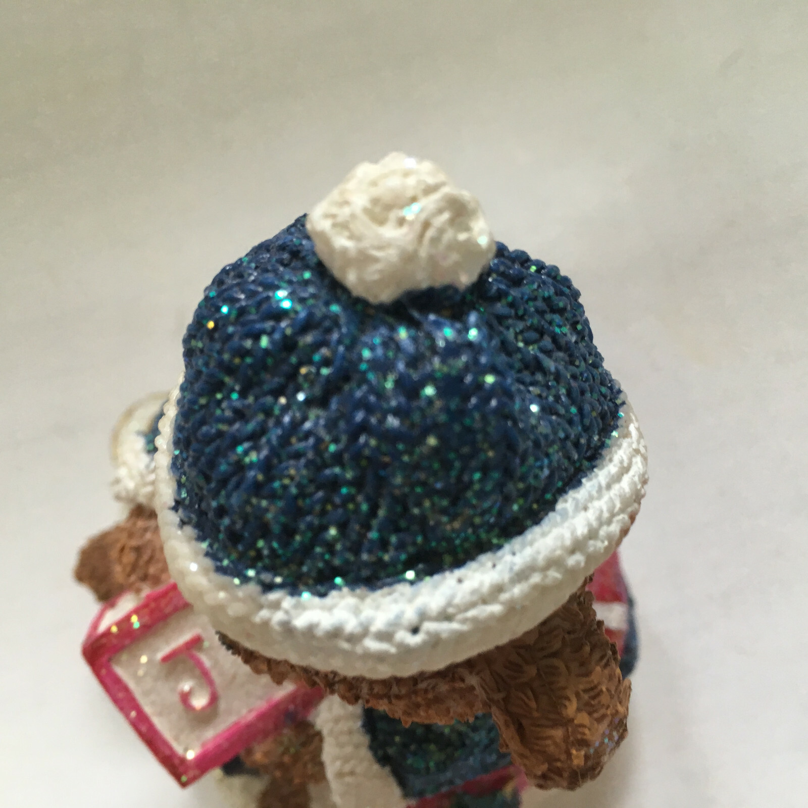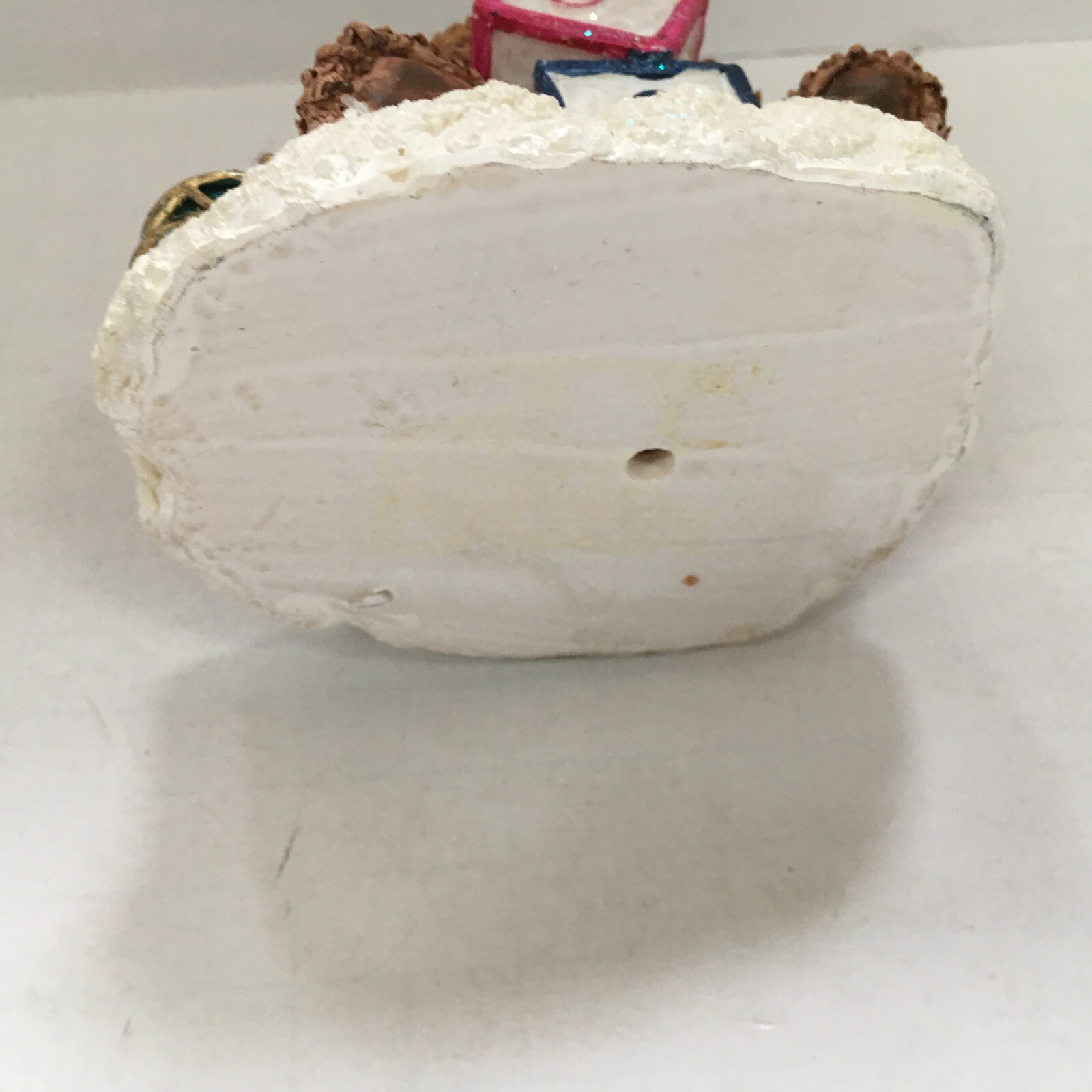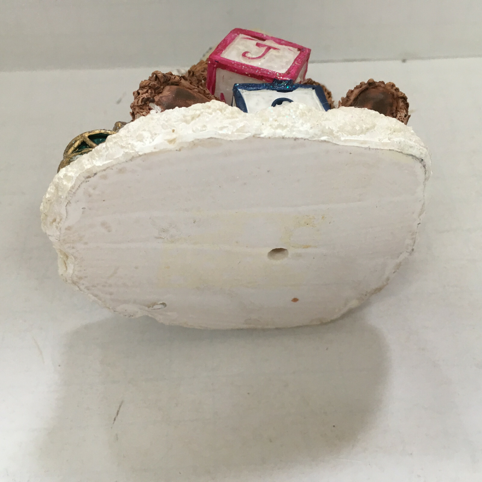 - Retro Christmas holiday baby teddy bear figurine with blocks glitter sparkling