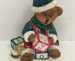 Retro Christmas holiday baby teddy bear figurine with blocks glitter sparkling