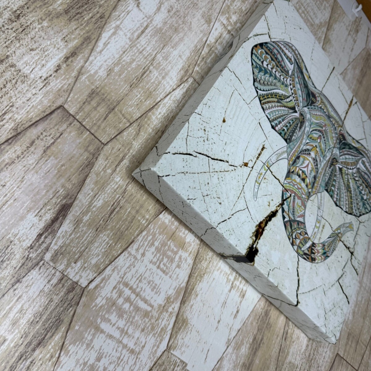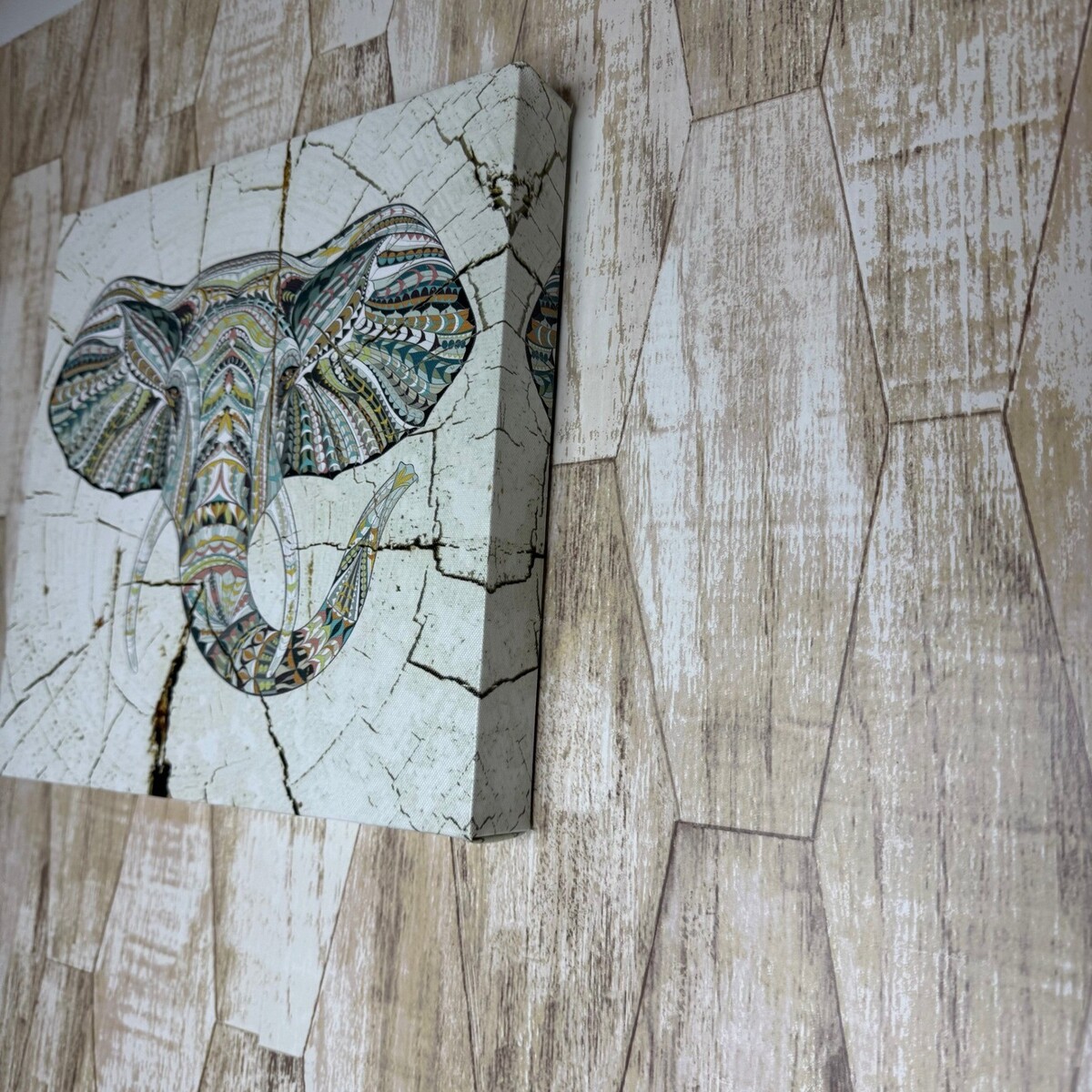 Keywords: tribal elephant art, multicolor elephant canvas, retro wall art, graphic print decor, wrapped canvas art, animal print wall hanging, boho chic decor, spiritual elephant art, mandala elephant design, living room wall art, bedroom wall decor