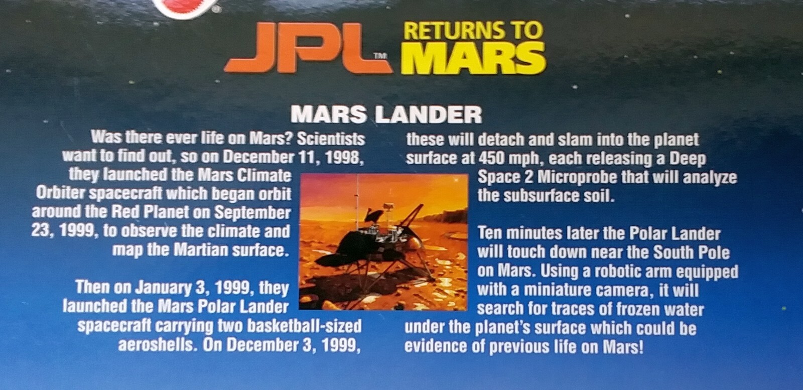 - Return to Mars 1999 Hot Wheels Sealed NASA / JPL Set, All Failed Missions, RARE!