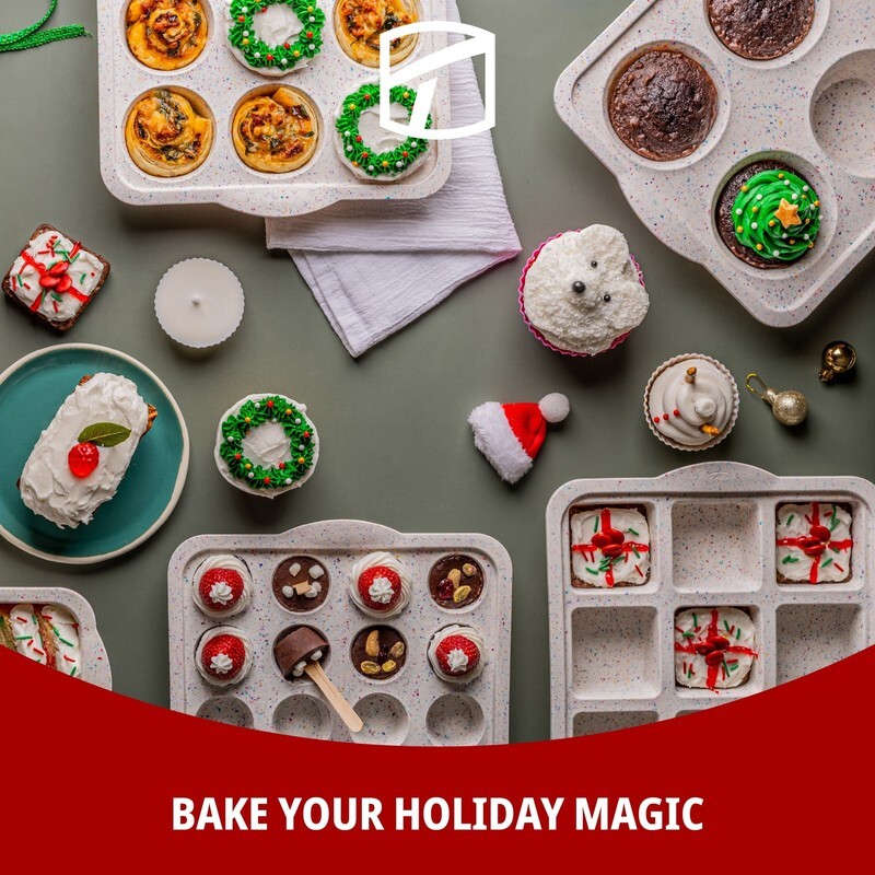 Holiday baking made easy! Great for snacks, cookie and cupcake decorating ? holds plenty of decorating treat options. Perfect for single-serve, make-and-take, and reusable fun! Holiday baking made easy! Great for snacks, cookie and cupcake decorating ? holds plenty of decorating treat options. Perfect for single-serve, make-and-take, and reusable fun! Standard muffin size Silicone pan made from BPA-free materials Nonstick design with integrated steel frame makes it easy to transfer muffins from pan to plate Freezer-safe, microwave-safe, dishwasher-safe and oven-safe up to 425 degrees