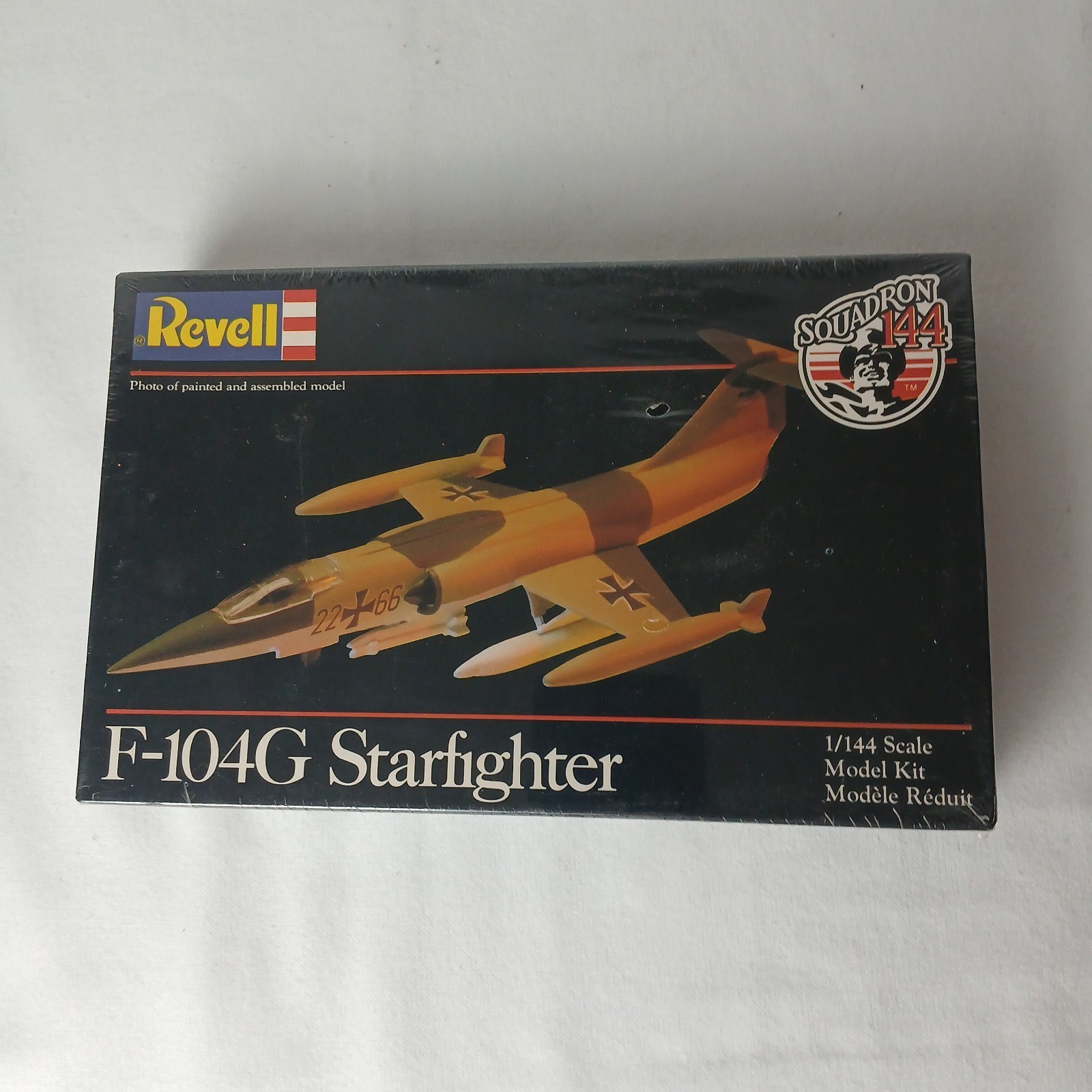 This listing is for an original Revell model kit featuring the F104G Starfighter Fighter plane. This item is in the original sealed box. The model kit is complete with instructions. The model is 1:144 scale. Glue and paint are not included.