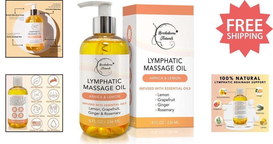 - Revitalizing 8oz Lymphatic Drainage Oil with Arnica, Lemon & Ginger for Recovery