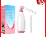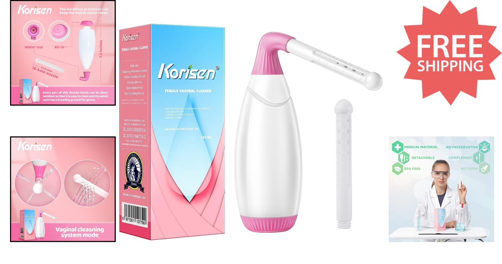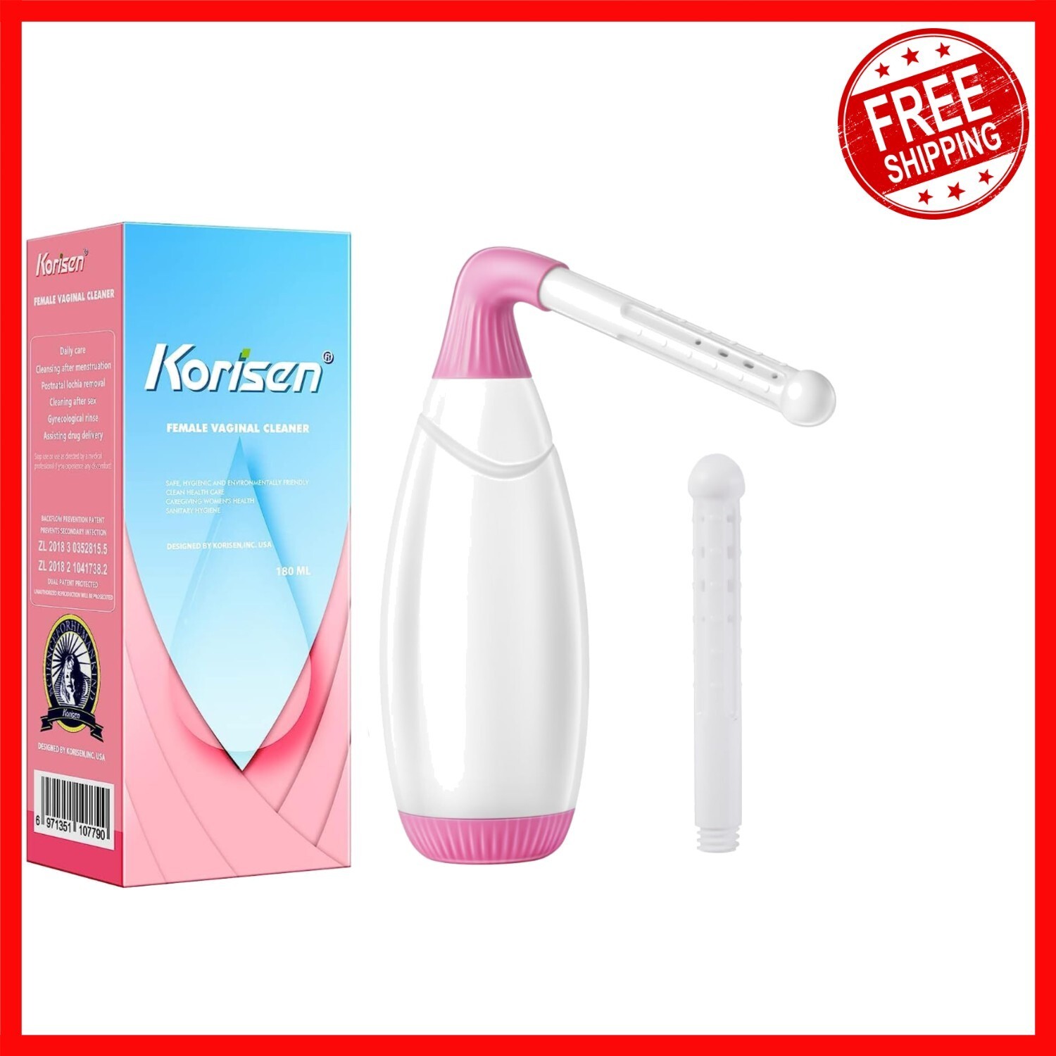 Experience versatile feminine hygiene with Korisen's innovative dual-function vaginal douche. Designed for easy carry and lifelong use, this product seamlessly switches between a gentle vaginal douche and a peri bottle with a simple rotation of the nozzle. Its detachable parts ensure effortless cleaning and hygiene, while a backflow prevention device guarantees water safety. Crafted from high-quality, non-toxic, and BPA-free materials, with a 60 angled tube for direct, hands-free water flow, this durable and sterilizable feminine hygiene tool makes an ideal gift for women. Elevate your hygiene routine with this practical, multi-use solution.