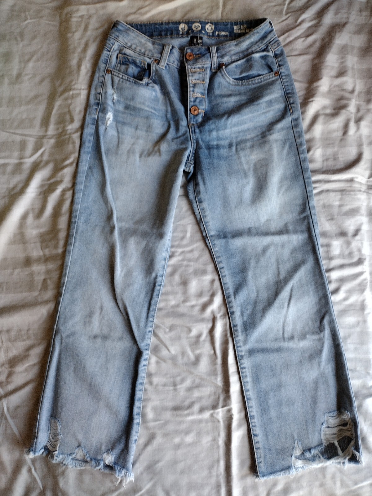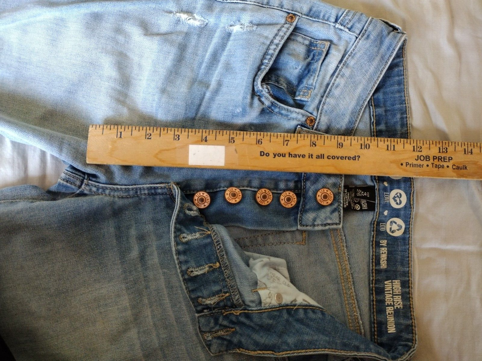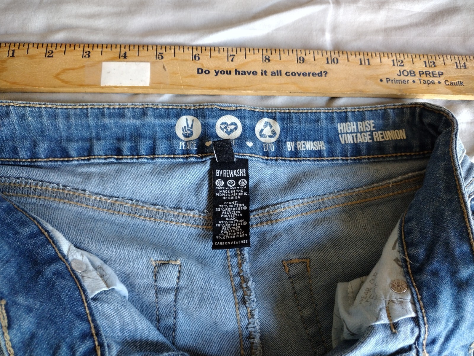 Rewash High Rise Vintage Reunion Woman Blue Distressed Frayed Leg Jean 3/26 EUC