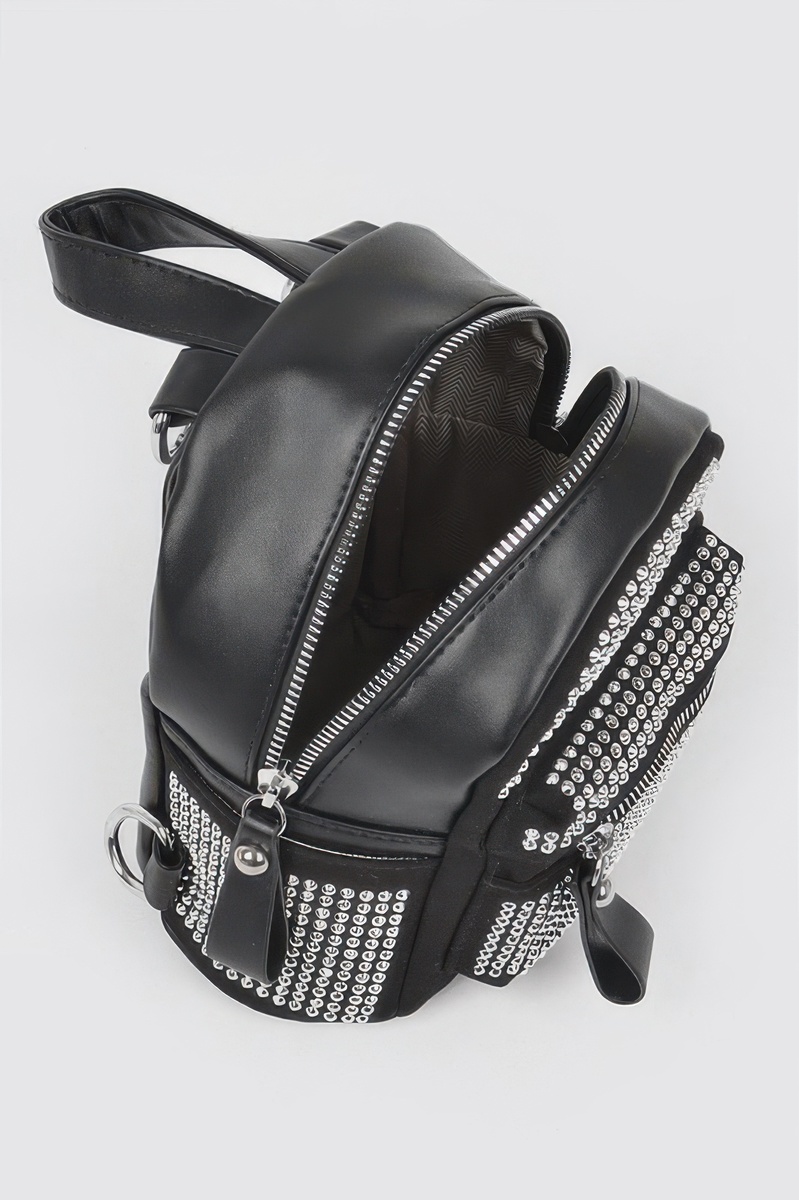 Product Description: Make every day sparkle with the Rhinestone Backpack, featuring shimmering rhinestone embellishments across a structured polyurethane body. Compact yet functional, its perfect for carrying essentials while making a bold statement. Product Details: Dimensions: 7W x 7H x 6.5D (approx.) Made from polyurethane and rhinestone with mixed metal hardware Zip closure for security Compact size for everyday use Ideal for parties, concerts, or city outings Size Guide: For accurate sizing guidance, please review our size chart available on the website. Shipping and Returns: Fast Shipping: We offer speedy delivery to your doorstep. Hassle-Free Returns: If you're not completely satisfied, our flexible return policy ensures your peace of mind.