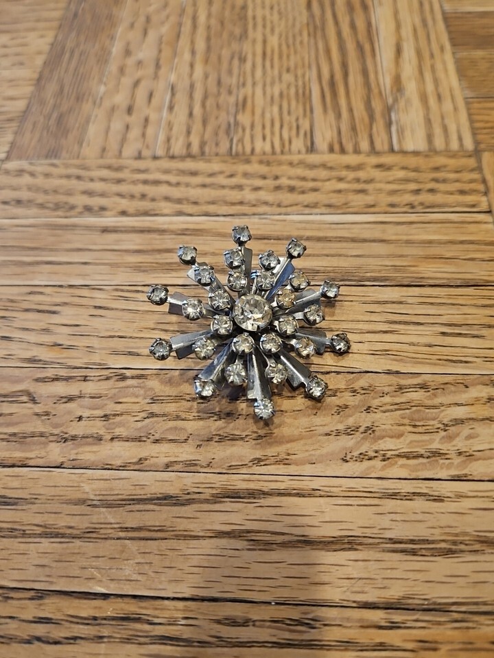 - Rhinestone Snowflake Burst Design Brooch Pin Pinback 2'', Vintage
