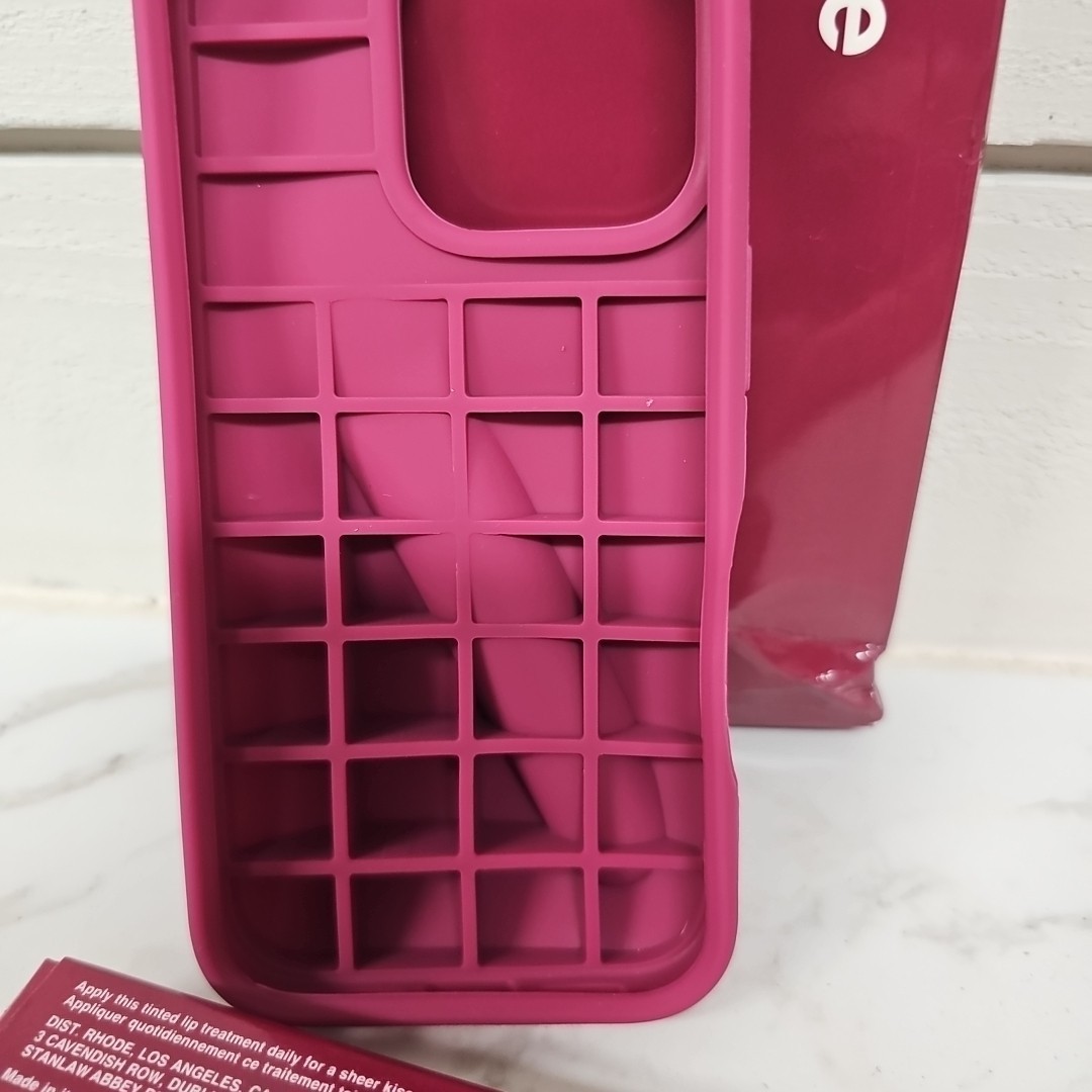 The Rhode Summer Lip Case bundle for the iPhone 16 Pro includes a raspberry jelly case and lipgloss. The luxury design and finish of the silicone case stand out with its pink color, while the protective skin ensures your phone stays safe. The set is perfect for fans of the Max character and offers a stylish and practical accessory for your device.