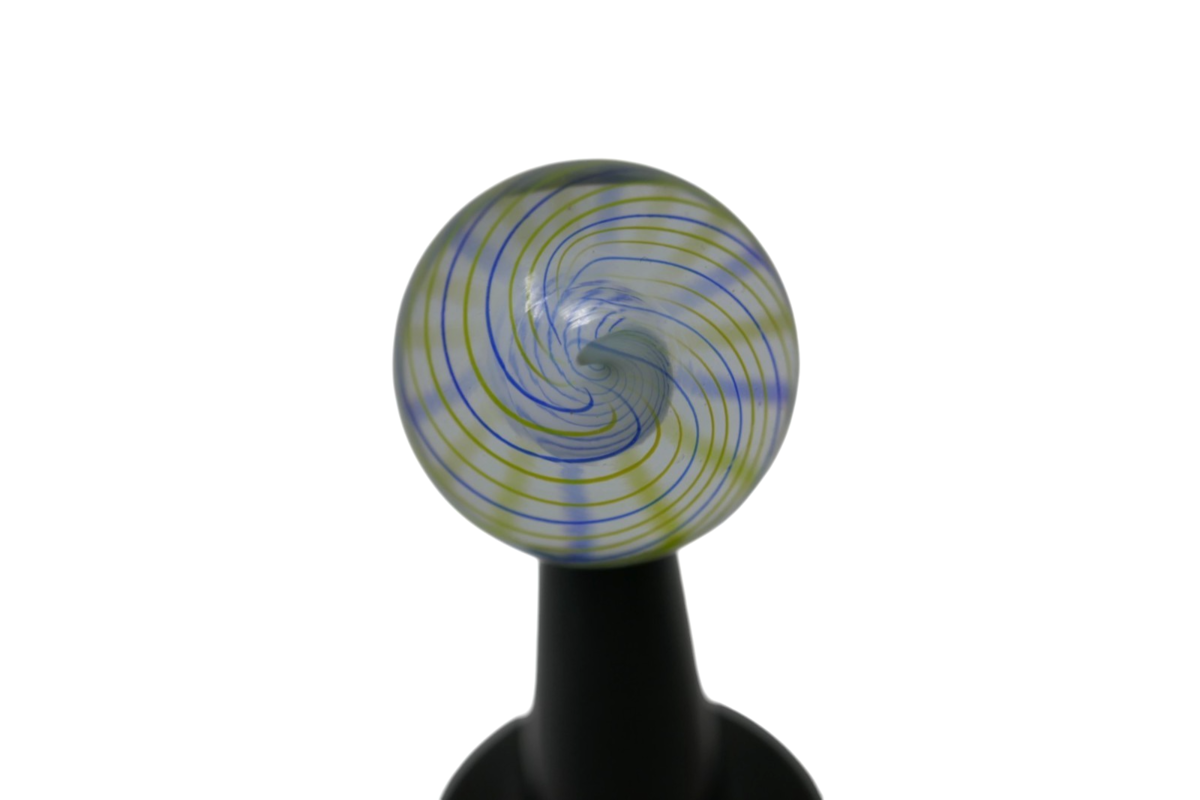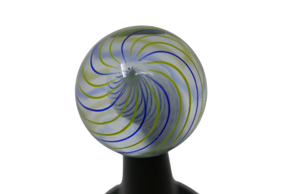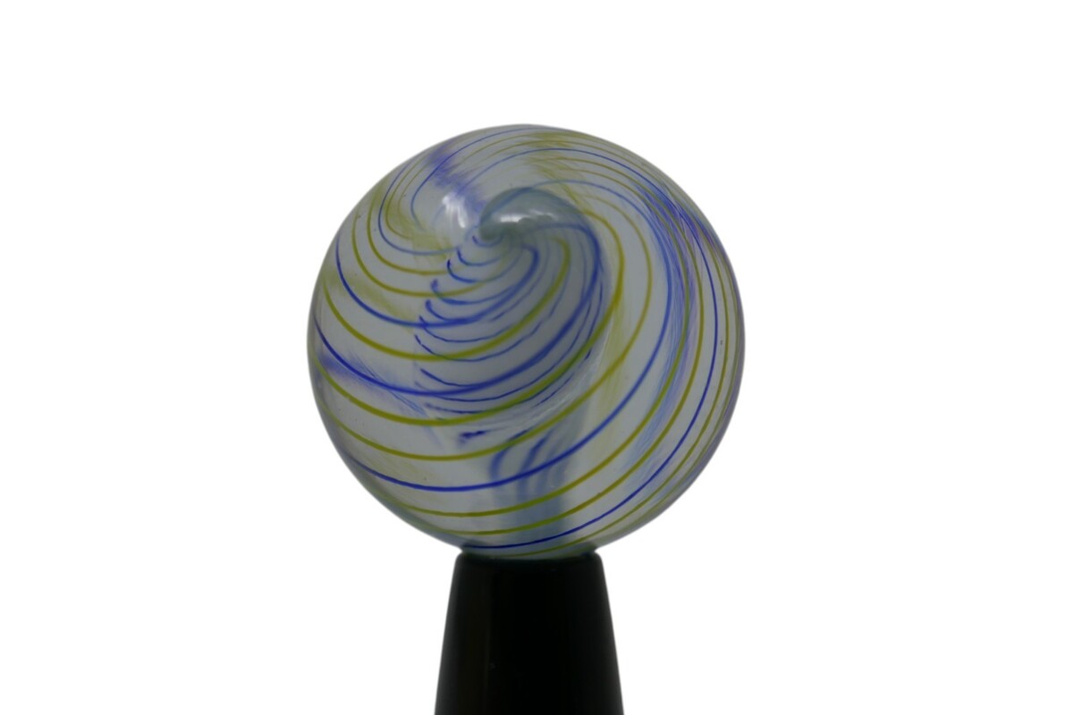 - Richard Marquis Studio Art Glass Marble ~ Blue Yellow White Swirls