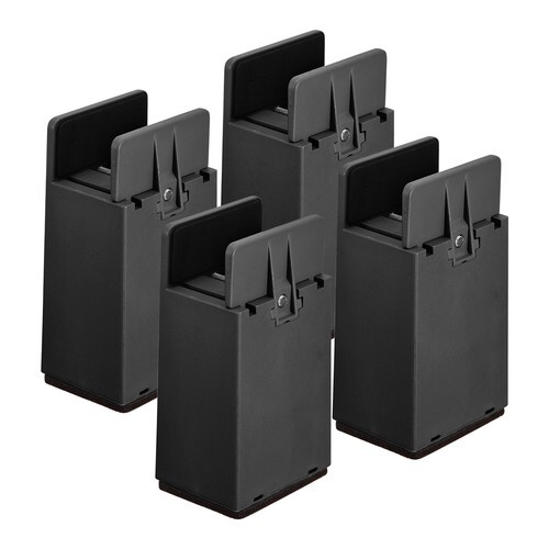 The *julRichards Homewares 190110 Riser Bed Risers are a practical and stylish addition to any bedroom. Made by the brand Richards, these bed risers come in a sleek black color. They not only provide extra height for your bed but also feature USB ports and outlets for added convenience. Perfect for providing additional storage space beneath your bed and keeping your electronic devices charged while you sleep.