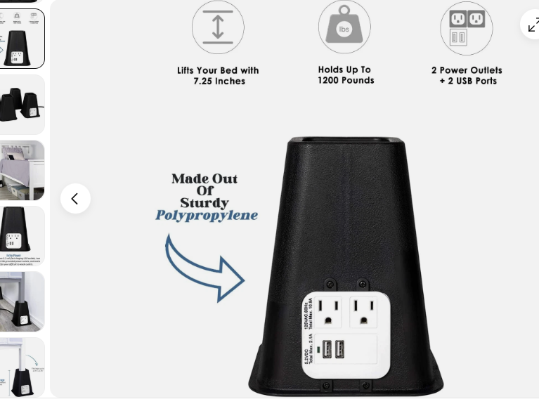 - Richards Homewares 190110 Riser Bed Risers with USB Ports and Outlets, Black
