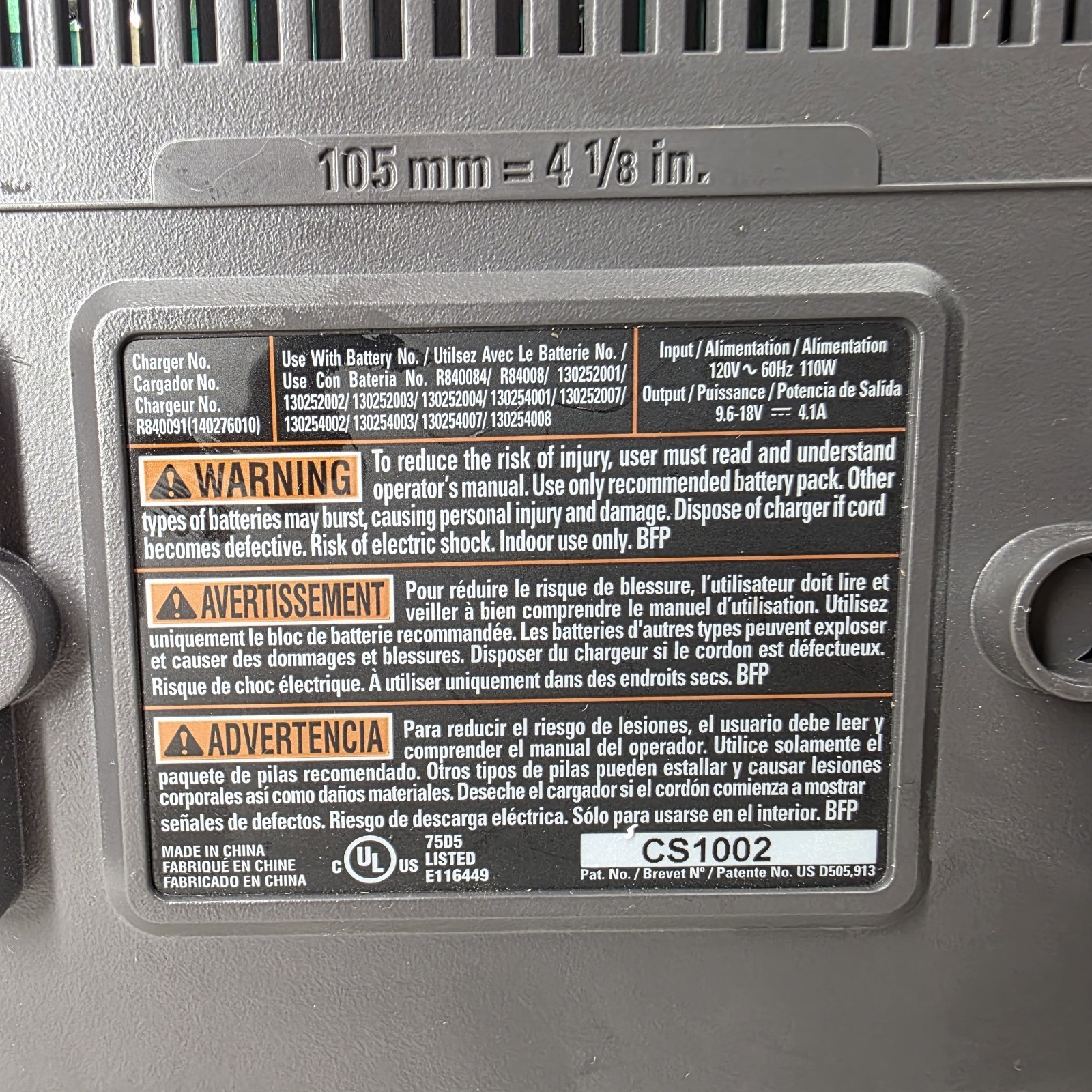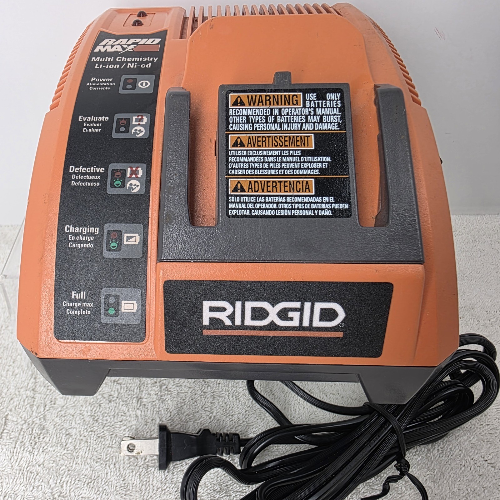 - Ridgid Rapid Max Ni-Cad/Lithium-Ion Battery Charger R840091 9.6 V. 12/14.4 V 18V