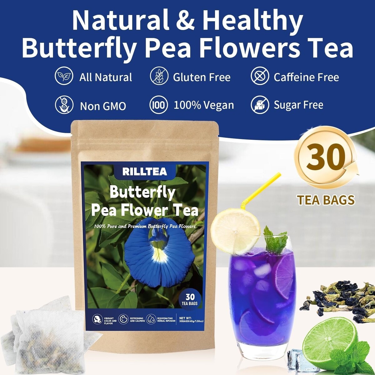 - Rilltea Natural Butterfly Pea Flower Tea, Blue & Purple Drinks and Food Coloring